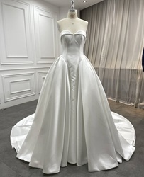 2025 Satin Strapless Wedding Dress with Sweetheart Neckline Ball Gown Bridal Gown for Brides