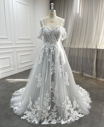 महान दुल्हन थोक कारखाना वियोज्य आस्तीन बेस्क कमर कमर की पोशाक दुल्हन गाउन