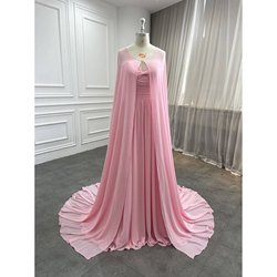 Kadın moda giyim sevgiliye boyun çizgisi Pleats şifon etek mütevazı pelerin resmi pembe zarif abiye